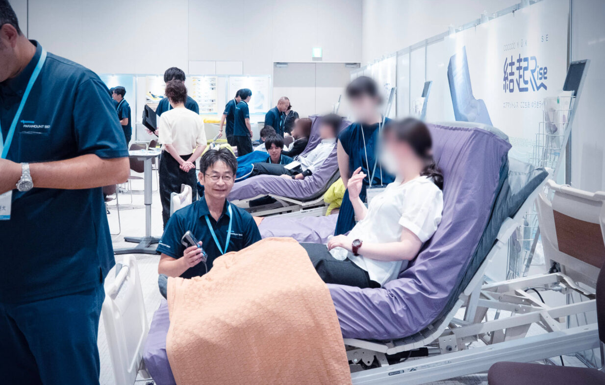 またブランドメッセージ「WELL-BEING for all beings」を体現する展示として、すべての人々を対象としたBtoC製品も展示。セルフケアやリフレッシュを提案する製品群には、夜勤などで時に生活リズムをキープしづらいこともある医療や介護スタッフの皆様が、大きな関心を持たれていました。